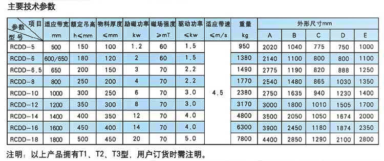 RCDD系列自冷自卸式電磁除鐵器,是一種自動卸鐵的除鐵裝置,是在RCDB、RCDG系列干式自冷電磁除鐵器上增加了一套自動卸鐵機構,在工作時將吸附除鐵器上的鐵磁性物質通過自動卸鐵機構將鐵磁性物質自動拋出。其特點是適應范圍廣,在環(huán)境比較惡劣場合工作穩(wěn)定可靠、使用壽命長、使用方便等特點。 磁路采用計算機模擬設計,透磁深度大,磁力強。 全密封結構、防塵、防潮、耐腐蝕。 自動卸鐵,滾筒采用腰鼓型結構,具有皮帶自動糾偏,維護方便。 電源采用低壓供電模式,故障率低。